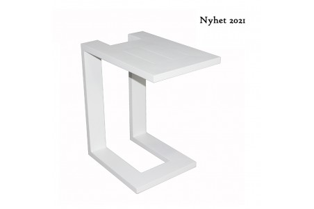 Sidobord i aluminium. Kan ställas vid sidan och föras över sittplatsen.