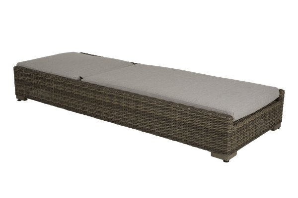 Ninja vilsäng i rustikfärgad konstrotting med beige dyna i olefintyg.
