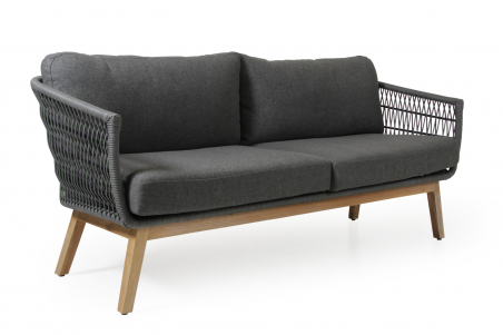 En smakfull kombination av konstrotting och teak, utmärkt i exempelvis ett uterum. Här är konstrottingen glesvävd vilket ger matstolen ett nätt intryck. Den levereras med både sittdyna och en smidig ryggdyna. 3-sits soffan har två tjockare sitt- respektive ryggdynor. Samtliga dynor är klädda i grått olefintyg. Matstolen passar utmärkt till flera av våra matbord i teak och soffan med våra teaksoffbord.