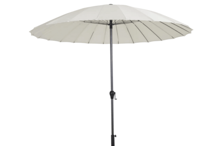 Shanghai är ett modernt parasoll med generös storlek och 50+ UPF-skydd mot solens ultravioletta strålning. 2,7 meter i diameter skapar skydd mot solen där det behövs. Parasollet har en gedigen vev och stång som går att luta, vilket gör det lätt att nå svalkande skugga. När det vinklas blir de många och vackra stålribborna synliga – form och funktion i harmoni. Detta parasoll adderar både stil och funktion till din uteplats. Sammantaget alla egenskaper som behövs för ett klassiskt Shanghai-parasoll.