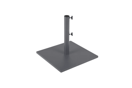 Fyrkantig parasollfot i pulverlackerad stål. Hela 34 kilo tung och med dubbla skruvfästen för extra stadga. Går att anpassa för att passa parasollstänger med 38 och 48 millimeters bredd.
