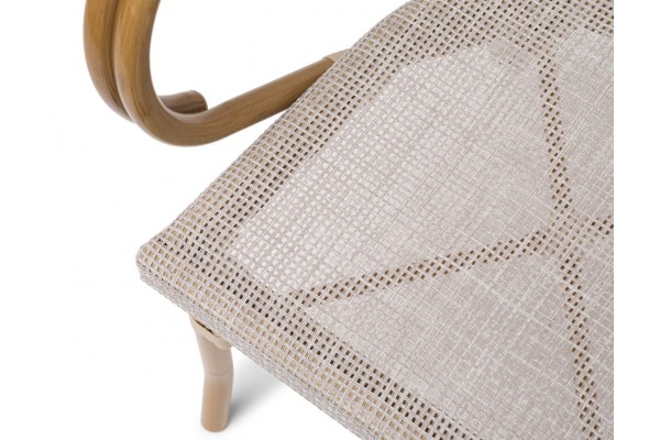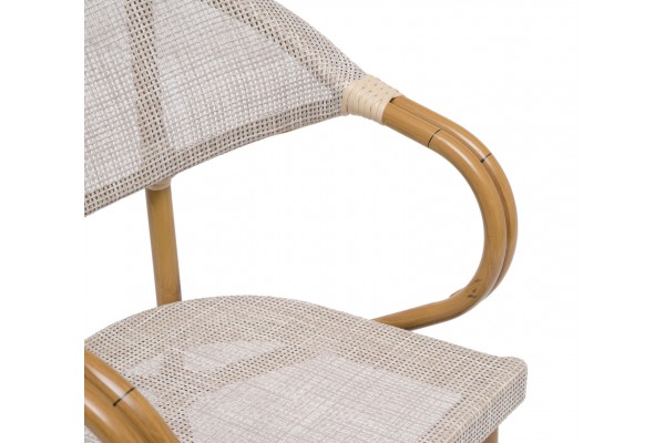Stilfull stapelbar caféstol i brun aluminium och sits och rygg i flätad textilen.