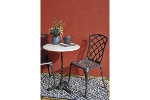 Arras stol i grå gjuten aluminium.