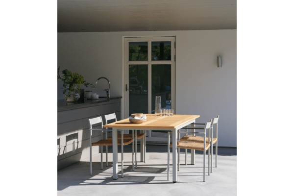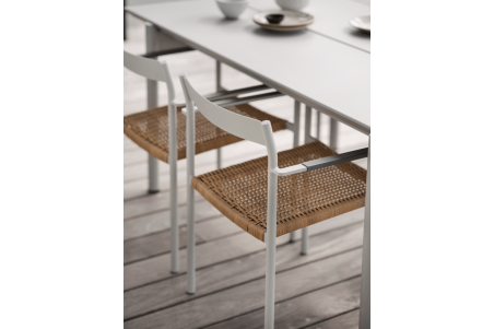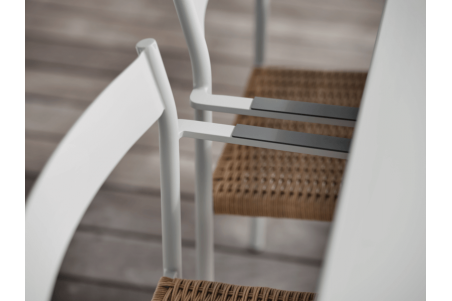 DK hyllar den skandinaviska designen och som för tankarna till mästerverk från 1950-talet. Elegant och stabil stomme i aluminium och med kontrasterande detaljer som lyfter känslan och håller DK aktuell – länge. Kontrastfärgerna på armstödet och den flätade sitsen i konstrotting är detaljer som lyfter stolen. Den genomgående luftiga känslan i designen är ett tydligt arv från de skandinaviska klassikerna. Finns i fyra färger.
